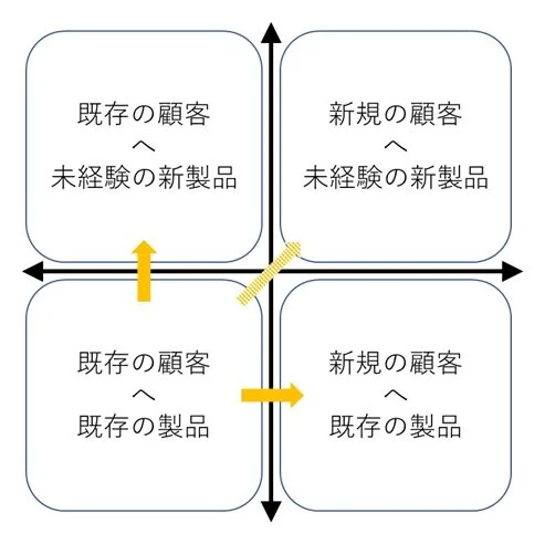 中小企業の場合は、自社の事業の資産が使えるかが重要です。既存の顧客へ売れるか、自社保有技術が応用できるか、販売チャネルを流用できるか、など。